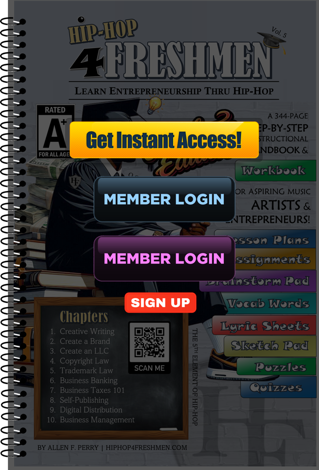 Hip-Hop 4 Freshmen is a self-guided playbook and online experience designed to help aspiring music artists and entrepreneurs turn ideas, talents and creativity into a real business.
